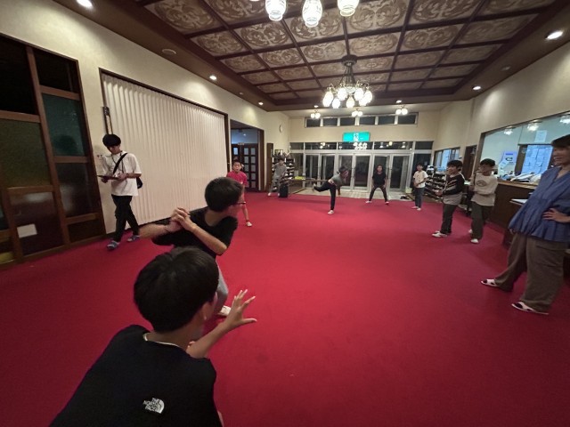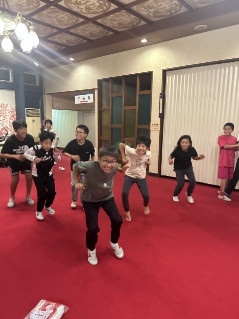 お風呂待ちをしている間、体力の有り余っている子どもたちがエア野球などをやっています。元気いっぱいです。