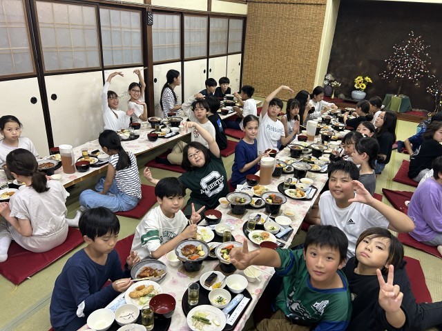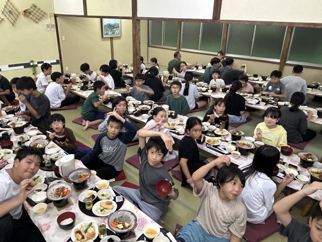 2日目の夕食です。みんな美味C!と叫んでいました。もりもり食べてお代わりのご飯が無くなるくらいでした。