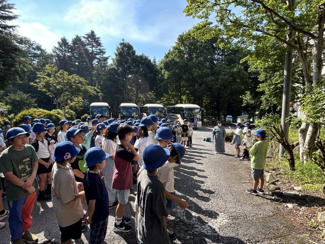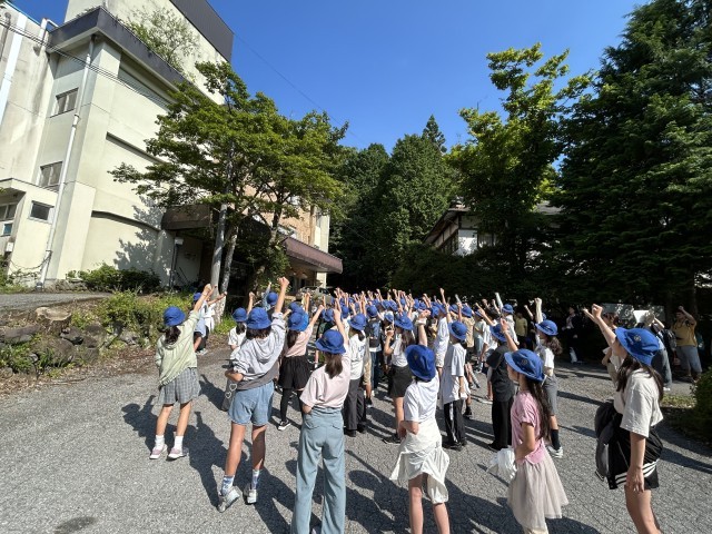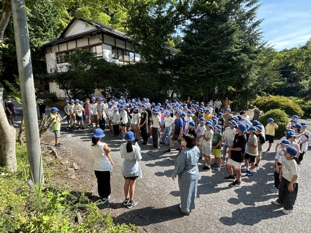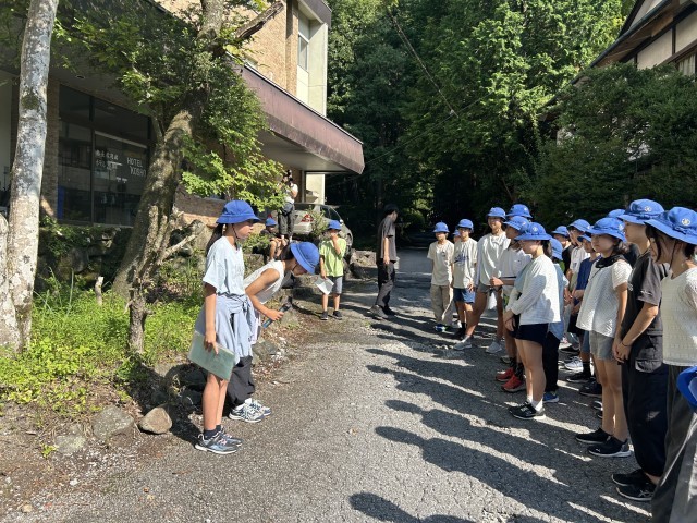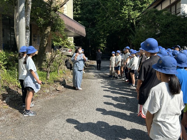 閉室式です。最後にお世話になった宿の方々に感謝の気持ちを伝えました。代表児童は「梅屋敷旅館での思い出が2つあります。お腹が減った時、梅屋敷の美味しいご飯を食べたら元気になりました。2つ目は旅館のお化け屋敷です。僕はお化け屋敷が苦手だけど班の友達と最後まで乗り切ることができました。僕たちに丁寧に接してくださりありがとうございました。たくさんの思い出ができました。」などと感謝の気持ちを伝えることができました。