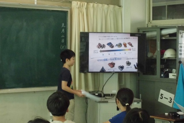 夏休みに子どもたちが一生懸命に取り組んだ、自由研究の発表会を各クラスで行っています。取り組んだ内容は様々な分野で、友達の自由研究に対しても興味をもって聞いています。ご協力いただきました保護者の皆様ありがとうございました。明後日4日から12日まで「夏休み自由研究作品展」を行いますので、ぜひご覧ください。