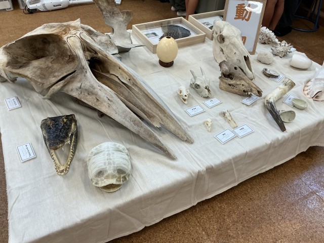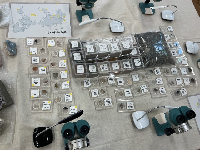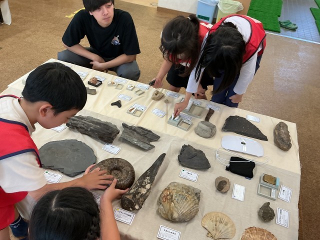 ゲストティーチャとしてNPO法人Science and Artの皆様に、化石や鉱物などに実際に触れることができる移動博物館を開館していただきました。アンモナイトの化石を実際に持ち「予想より重くて、びっくりしました。」や、鉱物や世界の砂を選んで顕微鏡で見ると「砂は実は色々な色があるんだね。」「鉱物はキラキラしています。」と感想をもちました。貴重な経験をありがとうございました。