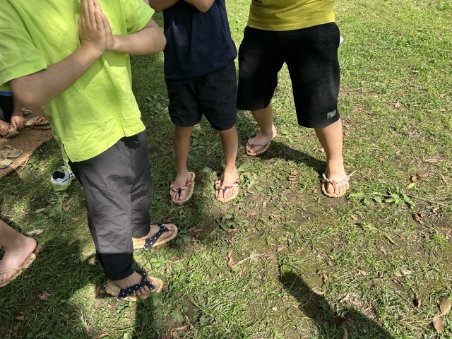 わらは様々なものに使われます。むしろ、米俵、まくら、燃料にも。その一つわらじを履く体験をさせていただきました。