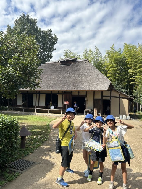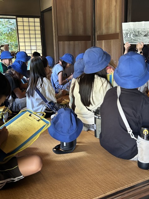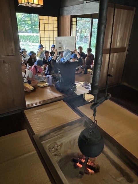 古民家では、藍染めをしているところを見せていただいたり、昔の人の暮らしの説明をいただいたり、100年前の世田谷区の様子を体験しています。みんな一生懸命にお話を聞いてメモをしていて素晴らしいです。