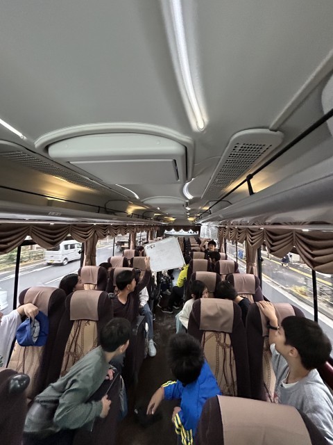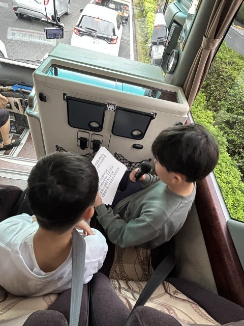 三好パーキングを出発しました。練馬インターチェンジまで混みましたが、バスレクをしながら楽しく進んでいます。