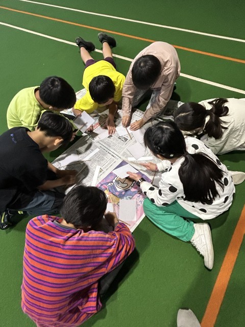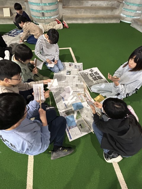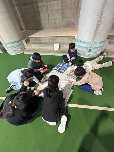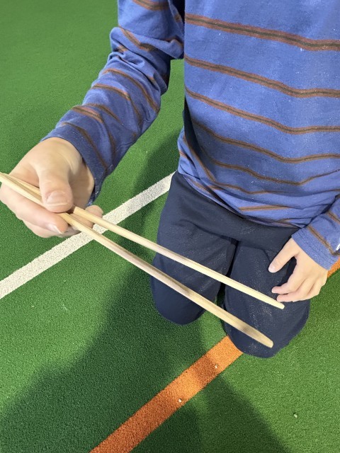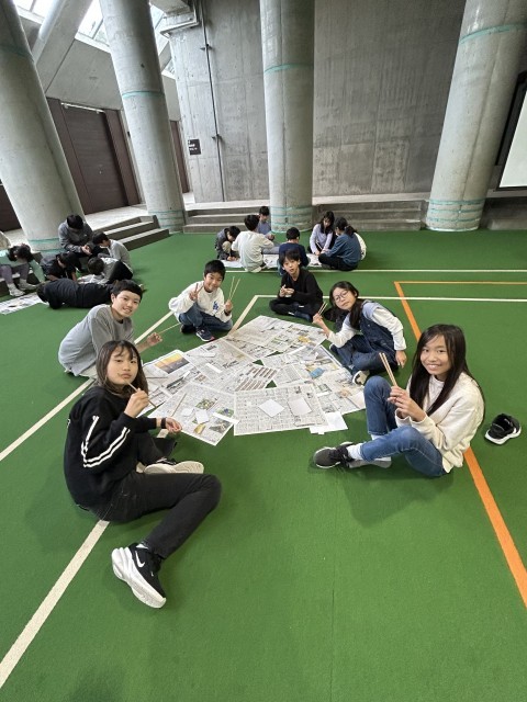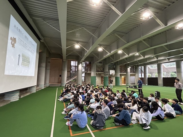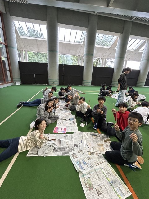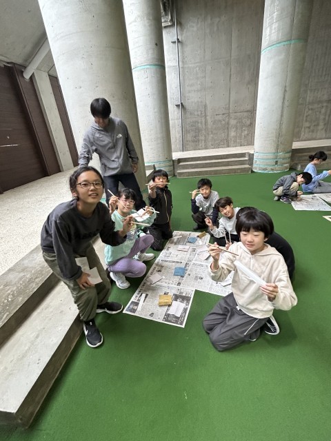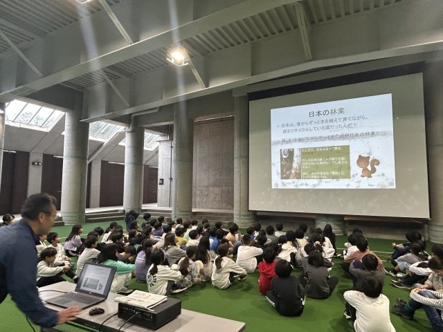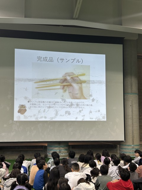 間伐材を使った箸作りです。日本の林業について、森を守ること、間伐材の有効利用などについてお話しいただいたあと、箸を作りました。行動班ごとに作りながら、和気あいあい、とっても楽しそうでした。