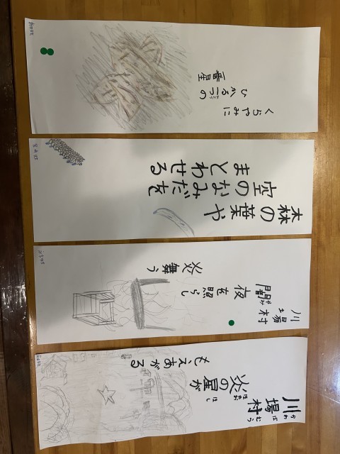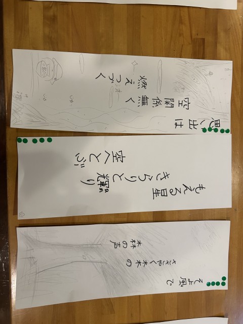 午前中に行った句会の投票の結果ぎ発表されました。写真は入選した子どもたちです。どれもすてきな句ですね。