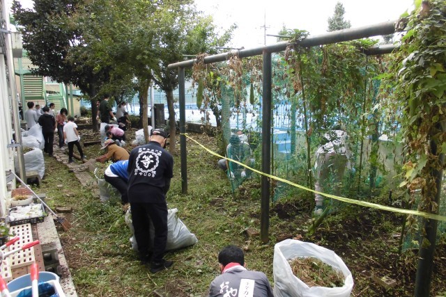 今日はお休みにもかかわらず、たくさんの皆様にお集まりいただき、築山清掃を行いました。築山だけではなく、校舎の裏や、植栽も整えていただきました。子どもたちも一緒に参加してくれて、刈り取ったものは45袋にもなりました。ご参加いただきました。子どもたち、保護者、地域の皆様、本当にありがとうございました。