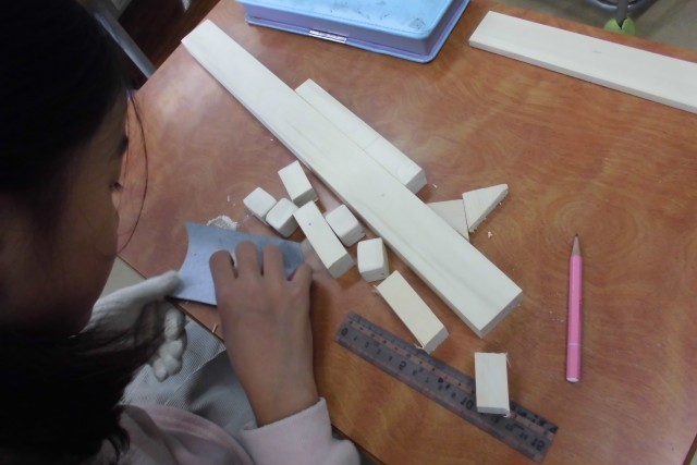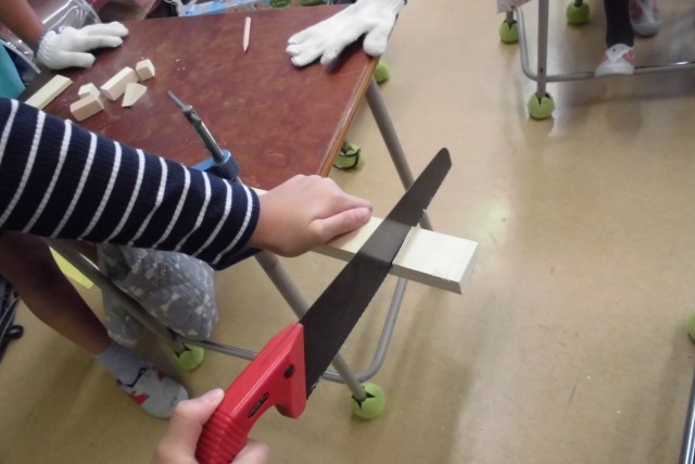 3年生の図工の学習です。とどろきフェスタへ向けた作品作りをしています。テーマは「Wood de Good!」です。初めてノコギリを使って木を切り、組み合わせて作品にしていきます。どんな形に出来上がるか楽しみにしていてください。
