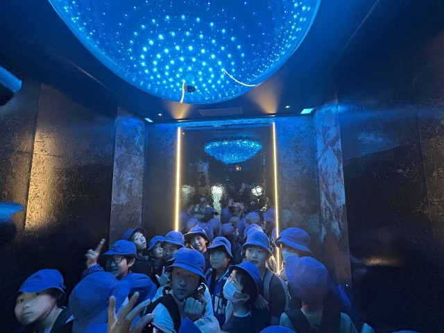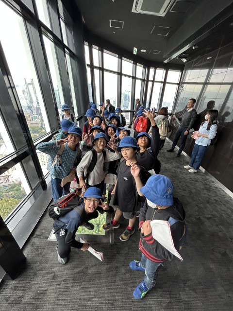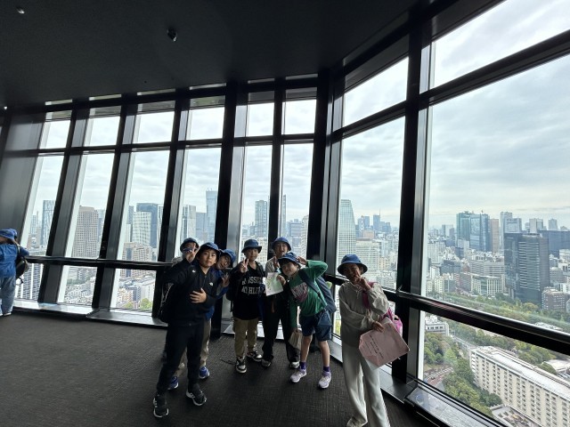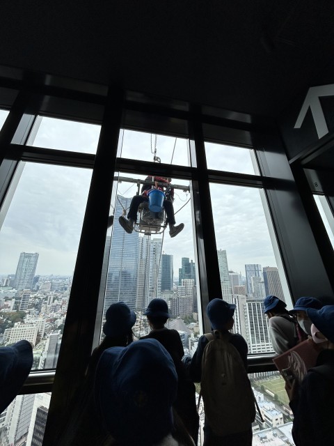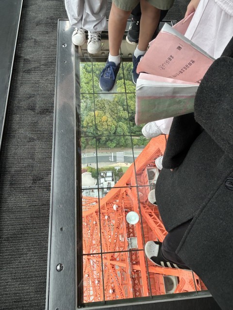 東京タワーの展望台に来ました。東京の様子を一望でき、スカイウォークではガラス張りの床のところがあり、150mのと高さに大興奮でした。高所で清掃作業されている方もいて、びっくりでした。