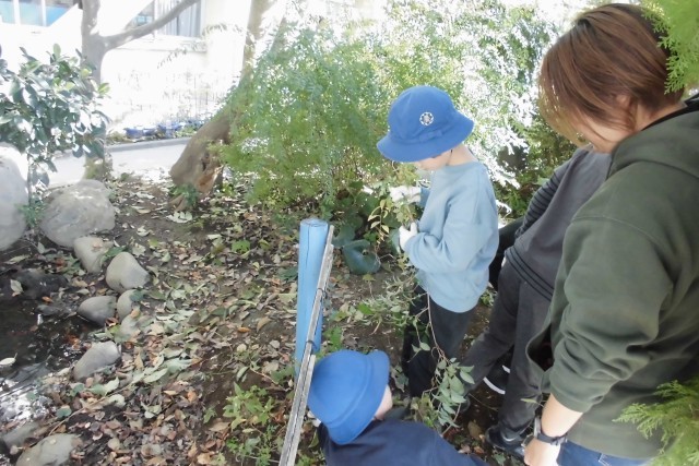 等々力小学校には、立派なビオトープの池が2つあります。ビオトープギルドさんに講師として来校いただき、ビオトープを題材にした、理科の学習の続きを行いました。今日は、夏の間に植物が大きく成長し、ビオトープの池に光が入らなくなってきたので、その周辺のヤブカラシなどの植物を間引きしました。これまらも観察や体験を続け、自然環境についての理解を深めていきます。ビオトープギルドの皆様ありがとうございました。
