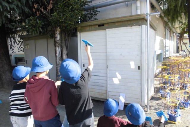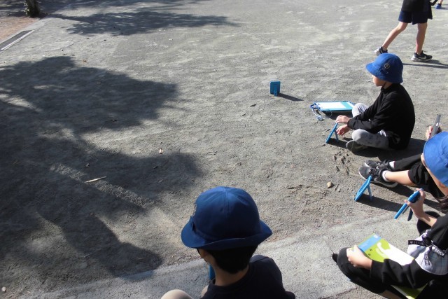 今日は、「光」についての学習には絶好の快晴。3年生の子どもたちは、一人1枚鏡をもって、校庭で太陽の光を鏡に反射させて遊びました。「反射した光がレーザーのようにまっすぐ進むね。」「日かげだったところが、反射した光で日なたみたいになった。」「光を集めると明るくなった。」などたくさんのことを発見していました。これから学習問題を作り、実験で確かめていきます。