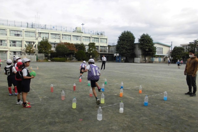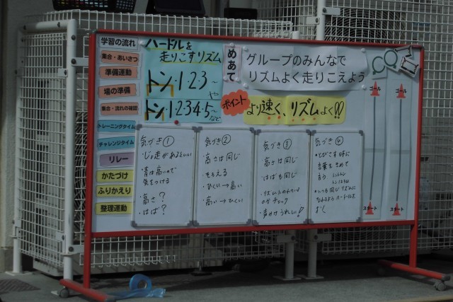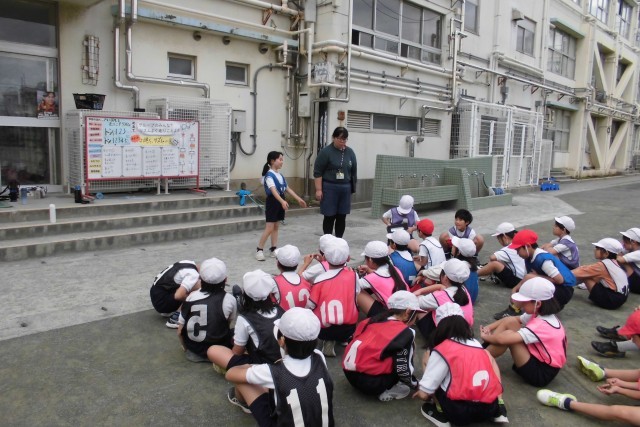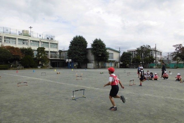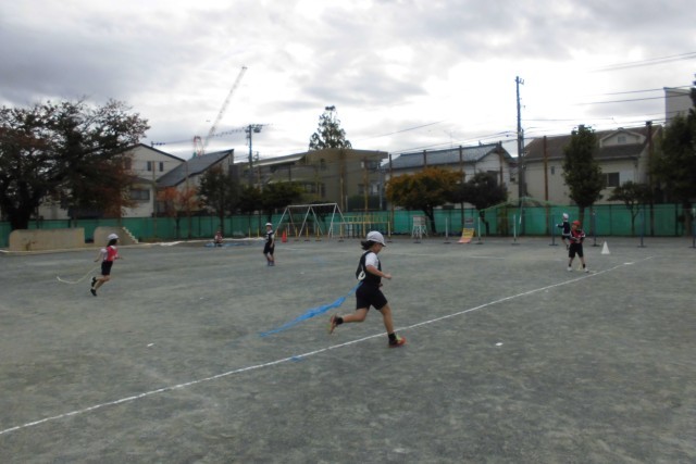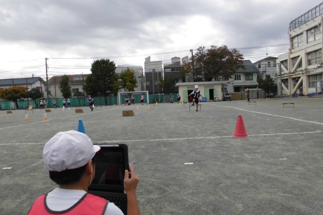 3年生の「小型ハードル走」の学習も最終回。これまでの学習を活かして「チームのみんなでリズムよく走り越えよう」というめあての達成に向けて取組ました。チームごとに相談しながら、どのようにしたらリズムよく走ることができるのか考えハードルを置き、跳び越して走りました。授業の振り返りでは、「ハードルをリズムにのって走り越すことがで楽しかった。」と、ハードル走の楽しさを感じることができました。今年度の体育の研究成果が表れた授業となりました。