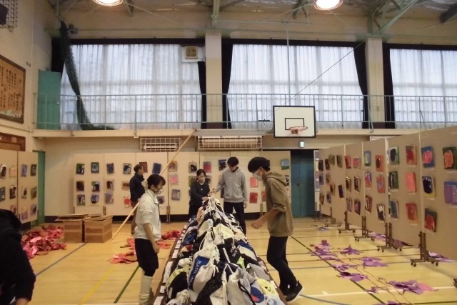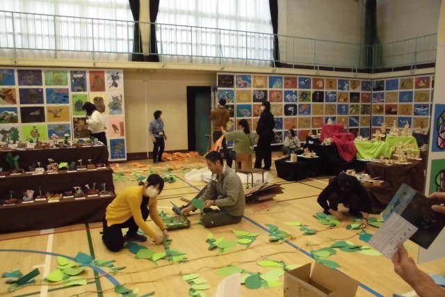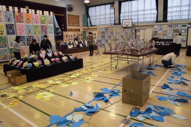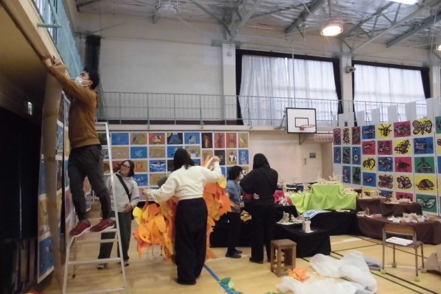 いよいよ明後日から始まる「とどろきフェスタ(展覧会)」。放課後の時間に先生方が、共同制作の取り付けをしたり、題字を付けたり、作業をしてくれました。子どもたちが心を込めて作った作品の数々が展示されています。みなさま楽しみにしていてください。