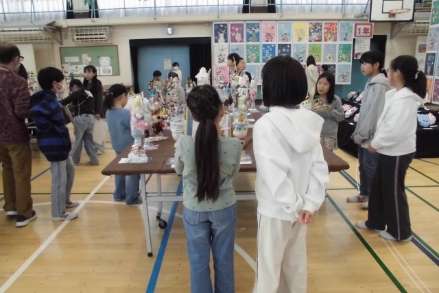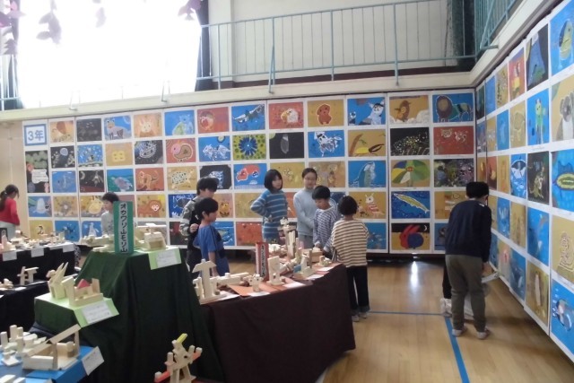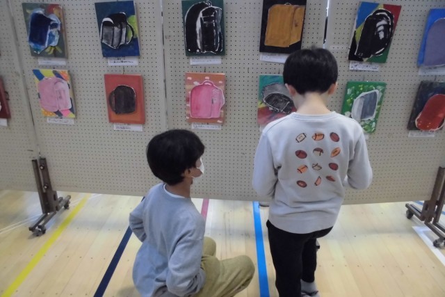 とどろきフェスタ2日目。今日は2年生と5年生がペア鑑賞をしました。自分の作品をちょっと誇らしく紹介したり、おすすめの作品を見付けたり、楽しく交流しながら鑑賞できました。すてきな交流になりました。