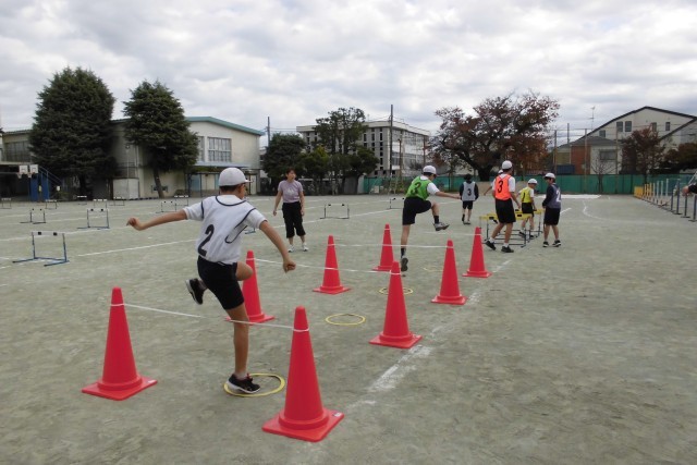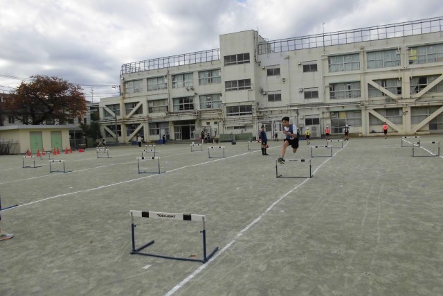 ハードル走に取り組んでいる6年生。自分の課題にあった場所(インターバルやハードルの高さが違う)で練習しました。友達からのアドバイスをもらったり、動画を振り返ったりして、振り返り、より速く走れるように取り組んでいます。