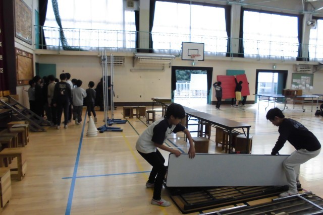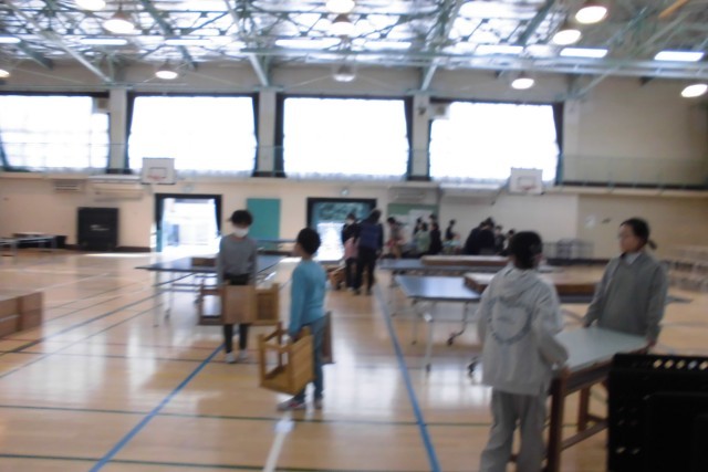 すてきな美術館だったとどろきフェスタも、作品の搬出を終え、会場復帰を5年生がしてくれました。机、いす、パネル、体育用具など思い物を声を掛け合って運んでくれました。あと4カ月で最上級生に進級する5年生。とても頼もしく思えました。5年生のみなさんありがとうございました。
