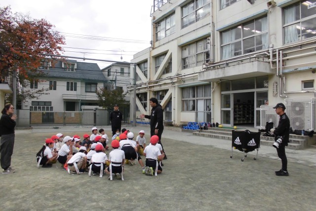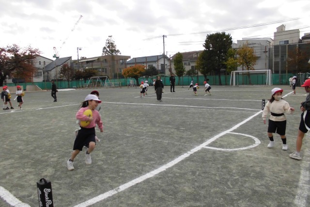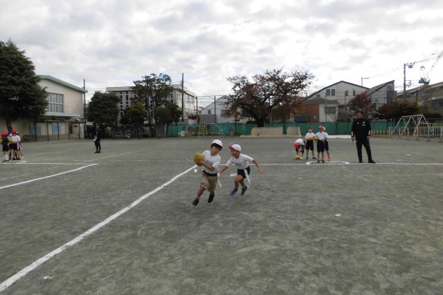 今年も、リコーブラックラムズ東京のみなさんにゲストティーとして来校いただき、3年生にタグラグビーの体験活動をしていただきました。すぐにやり方を覚え、上手にフェイントをして相手をかわしたり、素早くタグをとったりして対戦できました。感想の交流では相手の話をよく聞くことの大切さなども教えていただきました。肌寒い季節になりましたが、みんな元気に楽しく取り組むことができました。ブラックラムズ東京の皆さんありがとうございました。みんなで試合の応援に行けるとよいですね。