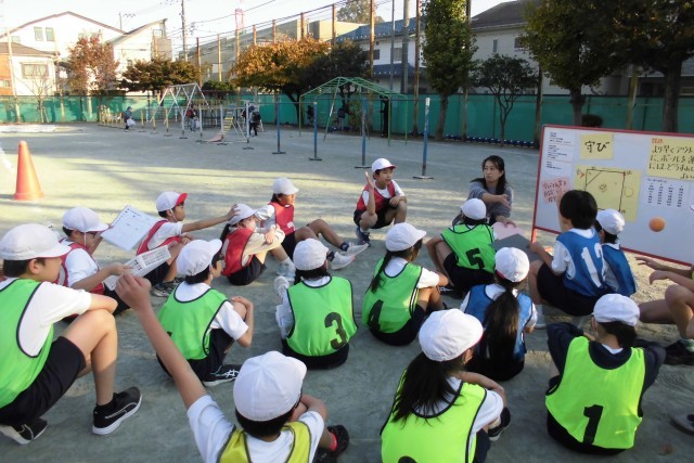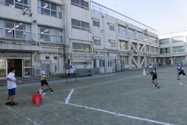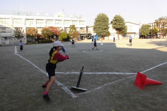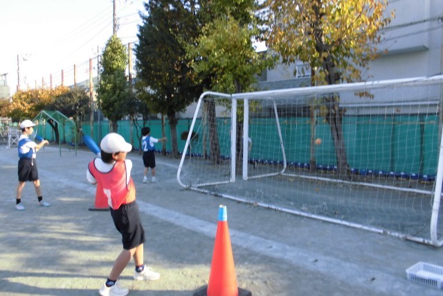 Tボールに取り組んでいる5年生。ルールを確認したり、作戦を相談したりしながら、自分たちの課題に合った練習をしました。今日は2試合。2打席連続のホームランの子もいたり、ファインプレーがあったりと盛り上がりました。ややもめる場面も。みんなが楽しめるように次からは改善していこうと、話し合いながら学習が進んでいます。
