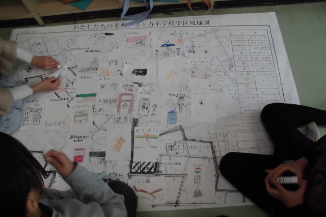 先日町探検に行ってきた2年生。そこで発見したことを、学区域の地図にまとめました。「大きな道路にはお店が多かった。」「コンビニはたくさんある。」「初めてのお店もあって、今度家族と行ってみたい。」などとそれぞれ気が付いたことを発表しました。掲示をしますので、保護者会の際にご覧ください。当日は引率のお手伝いありがとうございました。