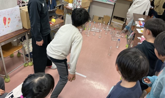 本日、4年生のお祭りに招待されました。おみくじ、ボウリング、ワニワニパニック、レストラン、小物づくり、ひもくじ、小物売り、映画館、とたくさんのお店があり、子どもたちはとても楽しんでいました。