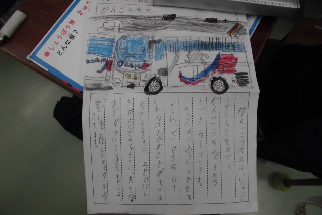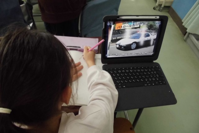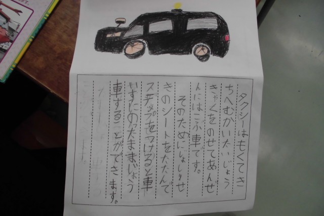 国語「じどう車くらべ」で説明文の学習をした1年生。その学習したことをもとに、「自動車図鑑」を作っています。ひらがな、カタカナ、漢字、文の構成など、学習したことをしっかりと活かした図鑑になっていて素晴らしいです。2学期に配布されたタブレットも活用しています。