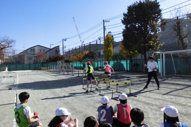 今日から12月に入りました。寒い季節でも体力を向上させる取組として、中休みの最後の5分を使った持久走が始まりました。こちらも運動委員会の皆さんが進行してくれています。6年生の体育では、ハードル走の続きです。6年生ともなるとしっかりしたフォームでハードルを越すことができるようになり素晴らしいです。友達同士アドバイスをし合っていました。