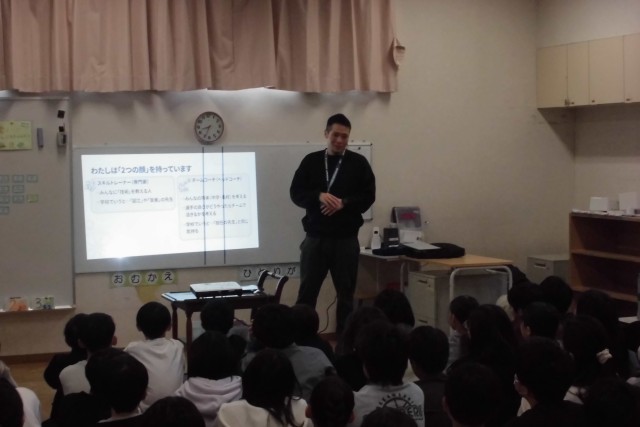 今日は、Dazzling SUNSというチームでバスケットボールコーチをされている保護者の方にゲストティーチャーとして来校いただき、キャリア教育の授業をしていただきました。