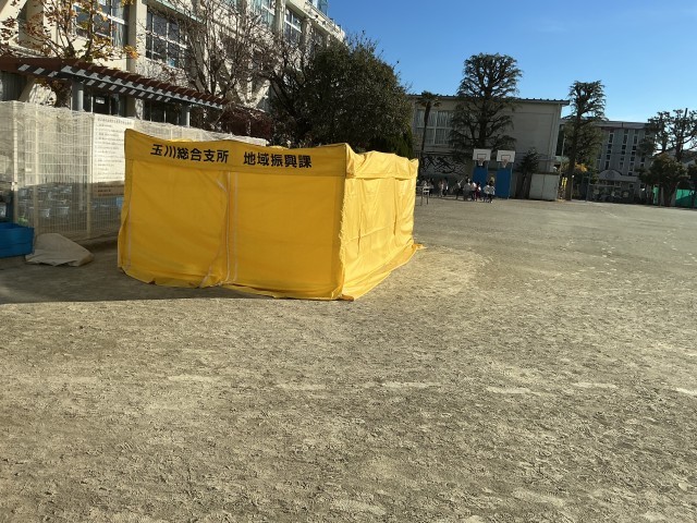 今日は、近隣の民家からの出火を想定した避難訓練を行いました。この季節は乾燥しているので、火が回りやすいことや、避難経路が変更になることなど確認しました。その後、5年生が煙中体験を行いました。疑似煙の中、姿勢を低くして移動することや、口元をマスクやタオルなどでしっかり抑えることを教えていただきました。多摩川総合所地域振興課の皆様、ありがとうございました。