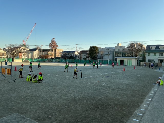 4年生は、校庭で元気よくティーボールを行っていました。ボールをキャッチした児童を囲み、声を掛け合ったり、「ナイス!」と声を掛けたりとルールを守り楽しく取り組んでいました。