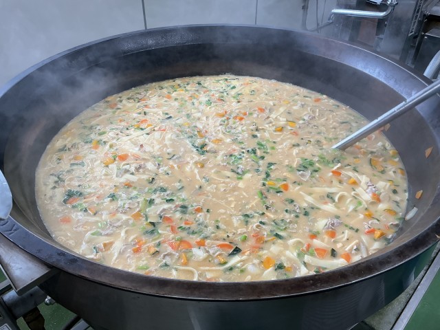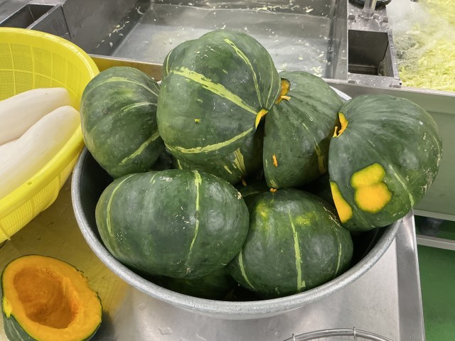 今日12月22日は、今年の冬至の日です。昨日は少し暖かい日になりましたが、今日はまたグッと冷えて冬本番の寒さになりました。冬至の日に、カボチャを食べたり、柚子湯で温まると、風邪をひかずに元気に過ごせるという言い伝えがあります。等々力小の給食室では、今年の冬至の日もほうとうを作りました。一つ2.5kgくらいの大きなカボチャが届いて、調理員さん4人がかりで切りました。ホクホクで美味しいカボチャ入りのほうとうで、おなかの中から温まりました。
