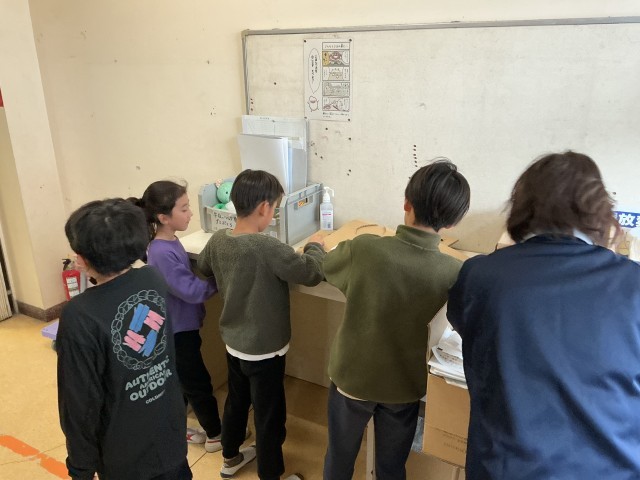終業式も終わり、各クラス大掃除をしていました。靴箱・体育備品棚・給食台等の清掃や古紙の仕分けなど、普段はできないようなところも念入りに行っていました。子どもたちの頑張りをサンタさんも見てくれていますね。