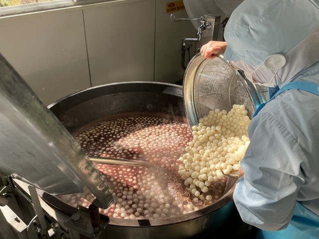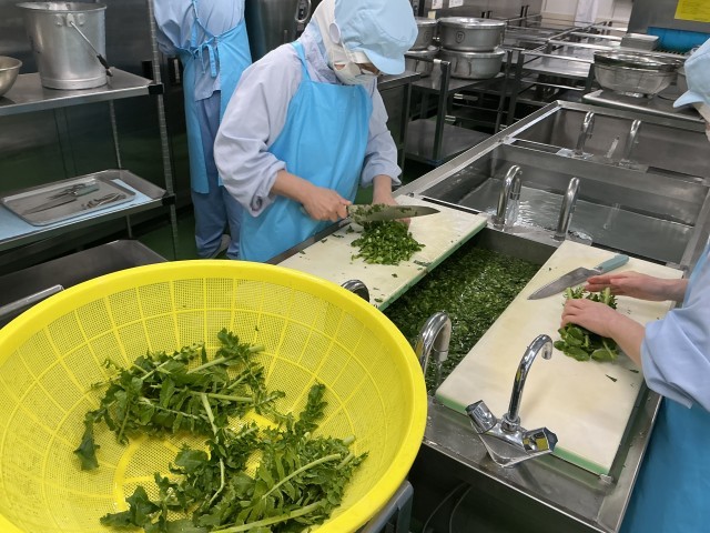 今日は小正月です。小正月は、旧暦のお正月の日で、小豆粥を食べて、五穀豊穣や無病息災を願ったり、「どんと焼き」を行ったりします。給食では、小豆を炊いて、「白玉しるこ」を作りました。お汁粉は、小豆が苦手な人も食べやすいように、ミキサーにかけてなめらかに仕上げました。サラダに使った大根は、「せたがやそだち」を届けてもらいました。喜多見地区の石井農園さんが育てた青首大根です。採れたてならではの、綺麗な葉っぱも付いていたので、よく洗い、切って茹でてから、そぼろに使いました。