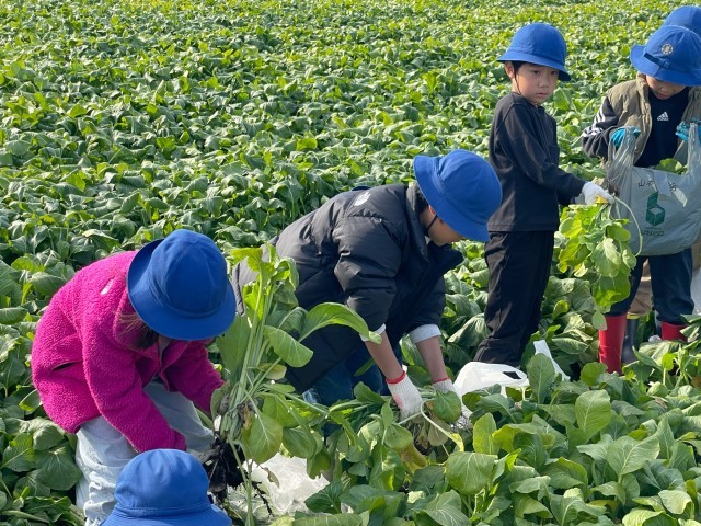 秋山農園さんの畑へ小松菜の収穫に行ってきました。
