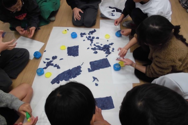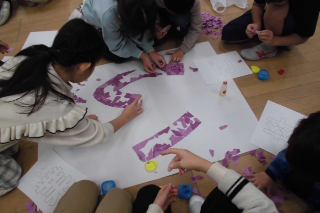 1月も最後の週となり、卒業式や入学式へ向けての取組も始まっています。今日は3年生が体育館に飾る、6年生や入学してくる1年生へ向けてのメッセージボードを作成しました。今年はお花紙ではなく、ちぎり絵で作成しています。1枚1枚感謝や歓迎の気持ちを込めて丁寧に作業していました。