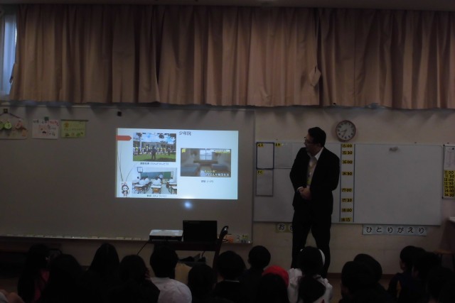 今日は、刑務所や少年院で心理カウンセラーのお仕事をされている保護者の方に、ゲストティーチャーとしてお話していただきました。一言で言うと、悪いことをした人が立ち直るのを助ける仕事(再び被害者が生まれるのを防ぎ、安全・安心な社会につながる仕事)だそうです。刑務所はどのようなところなのかや、この仕事のやりがいや楽しさについても教えていただきました。子どもたちは知らないお仕事であったので、質問したい子がたくさんいました。また一つ将来へ向けて「なりたい自分」をイメージするヒントをいただきました。お忙しい中ご来校いただき本当にありがとうございました。