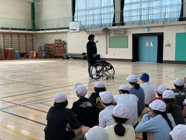 元プロ車いすバスケットボール選手の堀江 航さんを講師にお招きし、パラバスケットボールの体験をしました。堀江選手は、来月行われるミラノ・コルティナ2026パラリンピックのパラアイスホッケー日本代表選手でもあります。
