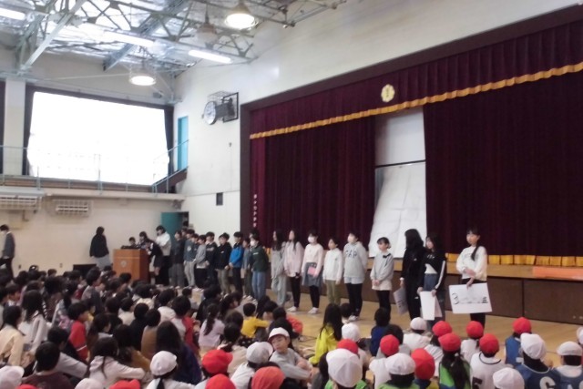 今日の児童集会は「先生シルエットクイズ」。先生にまつわるヒントを教えてくれて、その先生のシルエットが映るとみんな「〇〇先生だ!」と叫んでいました。とても楽しいクイズとなりました。今年度の全校児童集会は今日で最後となります。集会委員会のみなさん、1年間楽しい企画をありがとうございました。