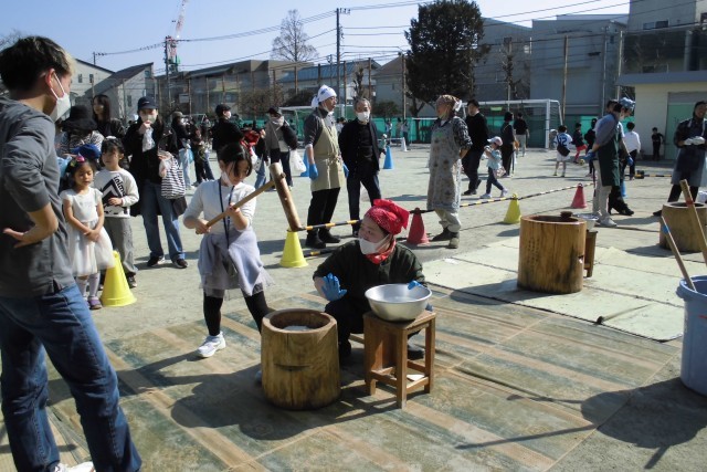 会場ではお餅つき、おやじの会の豚汁、子ども実行委員のお店、子どもたちが参加する各種団体のみなさんのお店もあり、みんな楽しく参加させていただきました。遊び場開放実行委員長をはじめ、地域の皆様、東京都市大学の大学生のみなさん、おやじの会、等々力児童館、深沢児童館、PTAボランティアなど、たくさんの皆様のご協力で大成功のお祭りとなりました。子ども・大人みんなWell-beingな一日となりました。本当にありがとうございました。