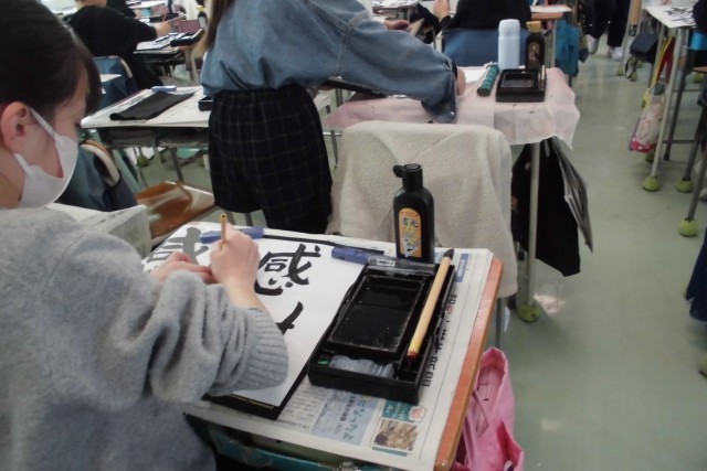 6年生の書写では、お手本をしっかりと見ながら、「感謝」という言葉を丁寧に書きあげていました。小学校生活最後に6年間を振り返り、感謝の気持ちをもてたらよいですね。集中して取り組めていて素晴らしいです。