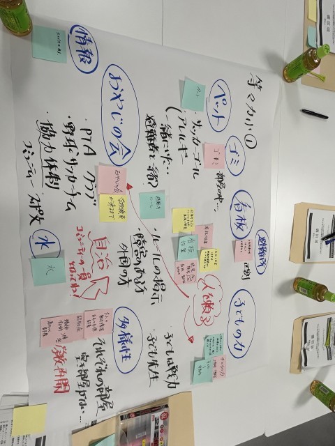 後半は地域ごとに話し合いました。自治をするために大切なこと、関係団体に協力いただくこと、子どもたちの力も借りて、災害を乗り越えていくことの大切さを考えていきました。