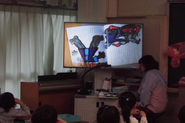 今日は3月のとどろき絵本の国の活動日でした。1から3年生までの各教室で読み聞かせをしていただきました。思わず笑ってしまう絵本から、大型絵本まで用意いただき、楽しい読み聞かせとなりました。1年間本当にありがとうございました。
