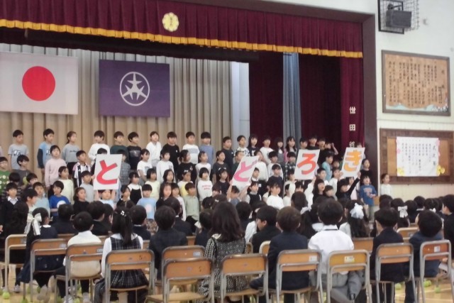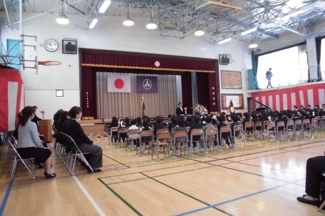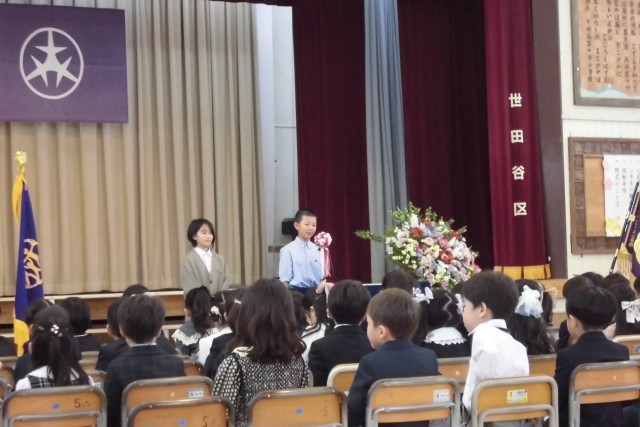 今日は緊張で疲れたと思いますが、明日から本格的に始まる等々力小学校の生活を楽しんくださいね。保護者、地域の皆様のご臨席にも感謝いたします。ありがとうございました。