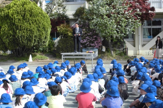 今日は校庭で全校朝会を行いました。校長からは、新年度が始まって高学年のみなさんんが大活躍していること、入学式での2年生の歓迎の演技が素晴らしかったこと、1年間の自分の目標や学級の目標をもつこと、委員会、係活動、当番等でしっかりと役割を果たして欲しいことなどを話しました。また、4月11日無事に、地球に宇宙船オリオンが帰還した、「アルテミス2」のことについてお話ししました。人類史上最も地球から遠いところ(時速300kmの新幹線で56日もかかるそうです。)まで行って帰ってきたこと素晴らしいですね。科学の世界にも興味をもって欲しいです。