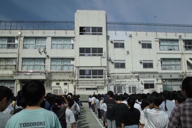 全校朝会・70周年記念写真