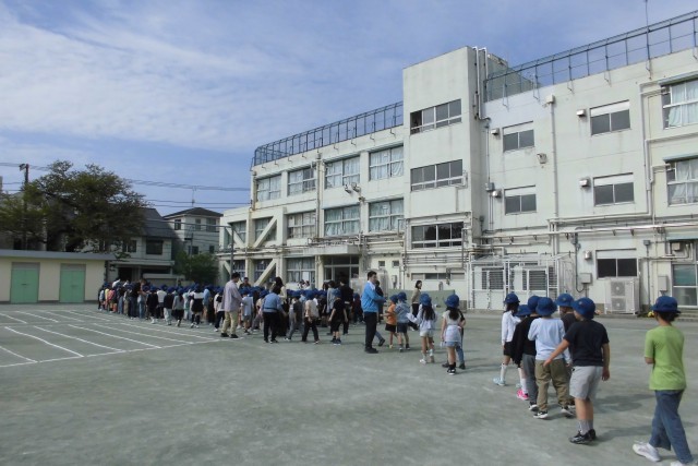 朝会のあとは、開校70周年記念として、全校写真を撮りました。620人と教職員全員で撮りました。どんな写真のなるのか楽しみです。明日は校庭に、周年キャラクター「トドシャチ」の絵を人文字で作り、航空写真を撮ります。