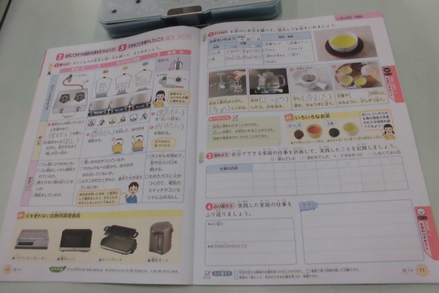 家庭科は調理実習の準備、お茶を淹れますが、その濃さもそれぞれ。「濃いめのお茶がいい!」という子もいれば、「苦いのは・・・。」グループごとに話し合っています。