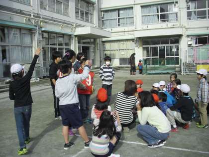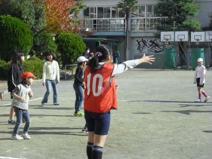 今日は「キッズタイム」が20分休みにありました。「キッズタイム」とは、等々力小学校で大切にしている異学年交流の時間です。1年生から6年生までの子どもたちが一緒に遊びます。6歳の違いがあるわけですから、6年生を中心とした高学年は、自分たちの楽しみだけでなく、小さな子たちのことを一生懸命に考えます。今日も遊びの中で、「小さな子にボールを回してあげようよ」「高学年は、ゆっくり投げてあげてね」「ナイスプレイ」などと、あたたかな声かけをしている6年生をたくさん見かけました。写真の中で赤いゼッケンをつけているのが、各班のリーダーたちです。