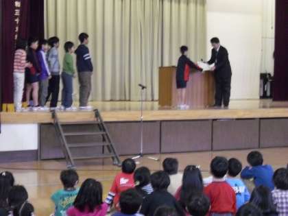 今日は、体育館で月曜日の全校朝会を行いました。最初に、世田谷区の海外派遣に参加した5年生から、オーストりア訪問について報告がありました。次に、税に関する絵はがきコンクール、税に関する書写展で優秀な成績を収めた子どもたちの表彰式が行われました。たくさんの子のがんばり・・・うれしく思います.