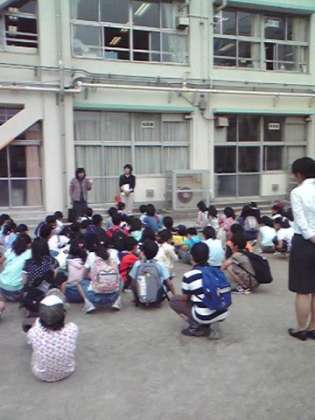 朝の挨拶。世田谷美術館に向けて出発です。