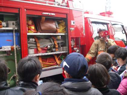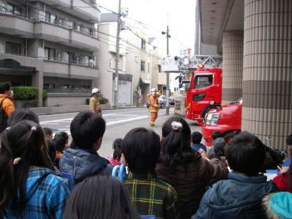 3年生が2月15日(金)に社会科の学習で玉川消防署へ見学に行きました。連絡があってから、出動までの動きを実際に見せてもらいました。たった55秒で完了していて、子ども達も驚いていました。